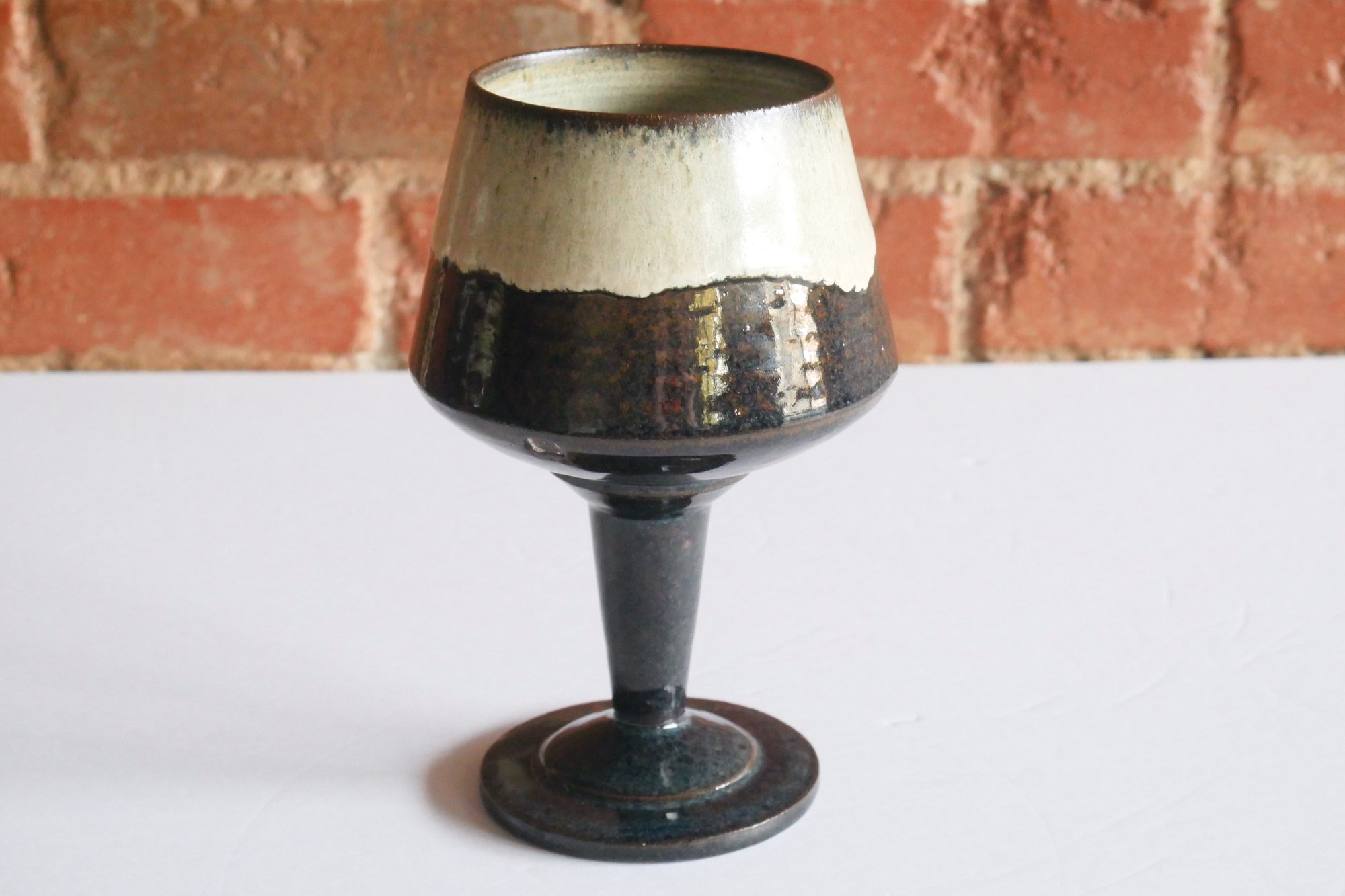 A friend asked for full size ceramic wine goblets, and so I made a few extra! Trimmed with sharp angles from a layered base, stem gently angling out to a round wide